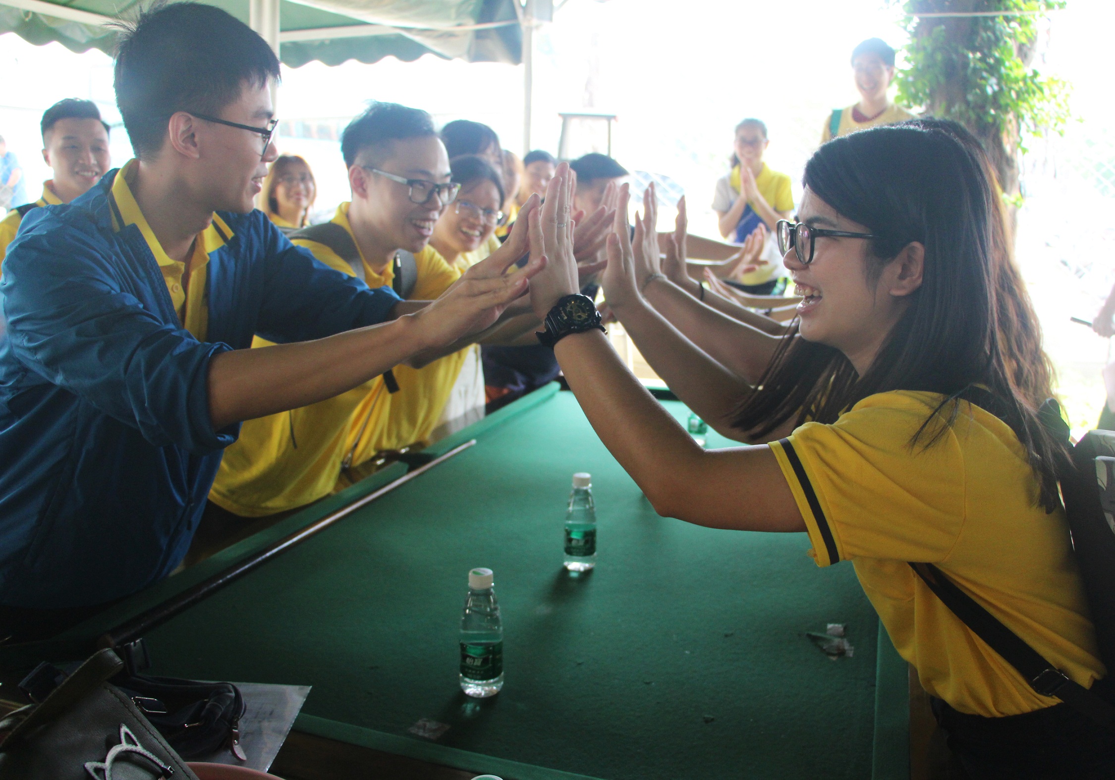 经过多日连绵的阴雨,5月11日早上终于出现久违的阳光。永利总站小黄人大部队到达番禺大夫山后,以小组为单位进行了“猜拳谁快”和“抢水瓶”游戏,挑战大家的反应力。活动开展过程中各小组激情盎然、招数齐出,战况激烈。最后集团本部第二小组所向披靡,在两个游戏中顺利胜出,赢得“快手魔王”称号和两份精美的礼品。