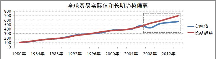 货币市场方面,主要经济体货币政策分化加剧,全球货币政策总体量化宽松。自2008年国际金融危机之后,国际组织的政策协调成效并不明显。在2014年11月举行的二十国集团(G20)首脑峰会上,各方承诺在未来五年内将G20整体GDP由目前预测水平提高2%以上。但总体来说,具体的实施效果不容乐观,国际货币基金组织和世界银行等国际经济组织倡导的改革则一再拖延,各国货币政策措施分化严重。美国于2014年10月份完全退出量化宽松;欧元区和日本年中以后仍在加大宽松政策力度;俄罗斯和巴西分别升息6次和5次,累计升息幅度全年达1150个和125个基点;罗马尼亚和韩国分别降息3次和2次,累计降息100个和50个基点。现阶段,全球货币政策呈现出总体量化宽松的趋势。其中,欧盟和日本主要以债券方式推行货币宽松措施,英国和美国通过有限升息预期维持着基本货币宽松,中国采取定向量化宽松政策,其他经济体大多数采取形式各异的宽松措施。货币政策总体量化宽松将推动全球贸易的回暖,也将导致贸易实际值偏离长期趋势,部分贸易实际值为汇率风险所抵消。