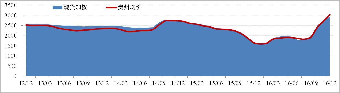 全国现货价格方面,12月份国内氧化铝现货价格的上行逐渐进入平台期,西南地区氧化铝价格反超北方地区价格。全国氧化铝现货加权价为2,955元/吨,环比上浮7.77%。贵州现货方面,氧化铝现货加权价为3,035元/吨,环比上浮11.34%。12月份氧化铝价格主要受电解铝新产能持续释放导致氧化铝供应略紧,以及山西重庆氧化铝环保检查影响。