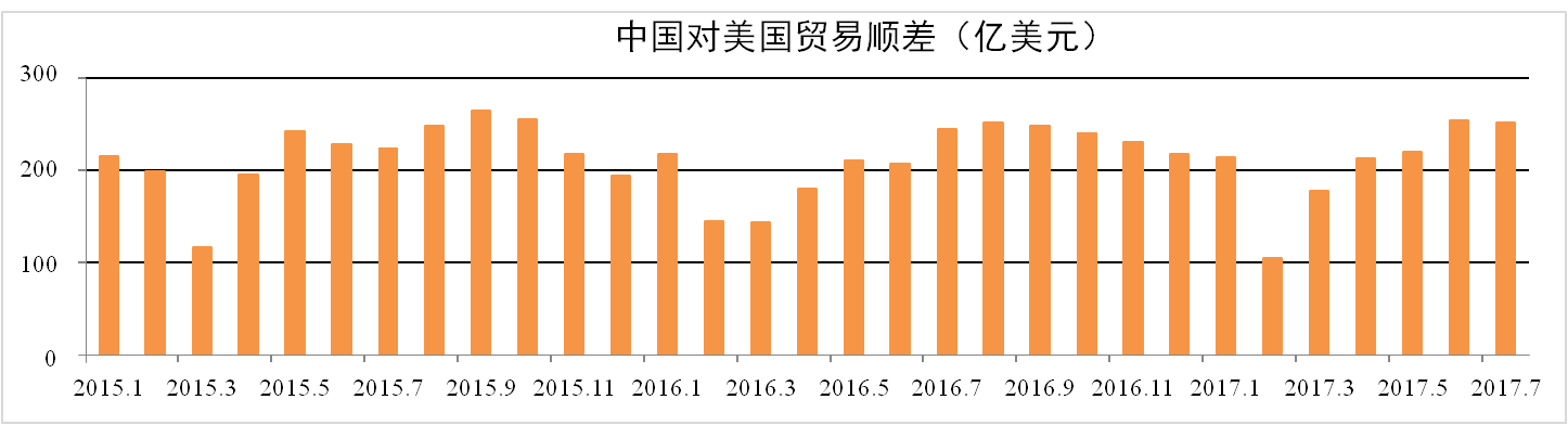 1-7月中美贸易累计顺差1435亿美元,较上年同期上涨6.3%。其中,7月份中美贸易顺差为252亿美元,同比上涨2.73%,环比微跌0.79%,为年内第二高。 7月举行的中美全面经济对话亦未能就钢铁贸易摩擦达成共识。