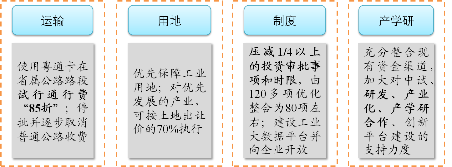 发稿时间:2017-09-29一、8月20日,广东省人民政府印发《广东省降低制造业企业成本支持实体经济发展若干政策措施》。该文件在税收、土地、用电、创新、融资等十个方面对降低成本做出明确的政策规定。文件目的在于将广东省打造为制造业成本洼地,提升竞争力。据测算这些措施的实施将在2017-2020年累计为制造业企业降低约2600亿元成本。