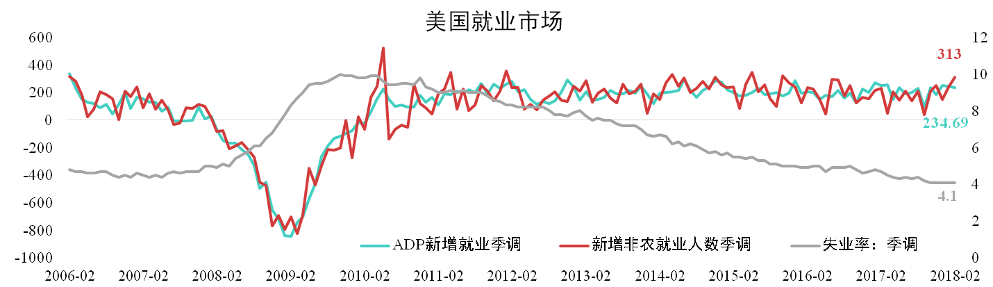 分析认为:就业数据显示美国私营部门用工需求依然强烈,显示企业家对经济前景乐观。而时薪增速不及预期反映通胀压力不及市场预期那么强烈,预计美联储2018年加息次数维持3-4次。