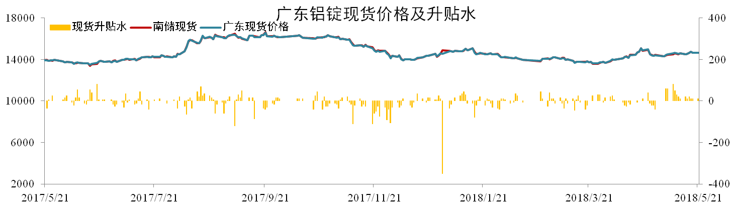 截至6月8日,南储华南铝锭现货价报14740元/吨,环比上涨0.82%,广东现货成交价报14800元/吨,环比上涨0.89%。截至2018年6月8日,全国铝锭库存为193.35万吨,环比下降7.84%。南海库存为30.84万吨,环比下降2.51%。