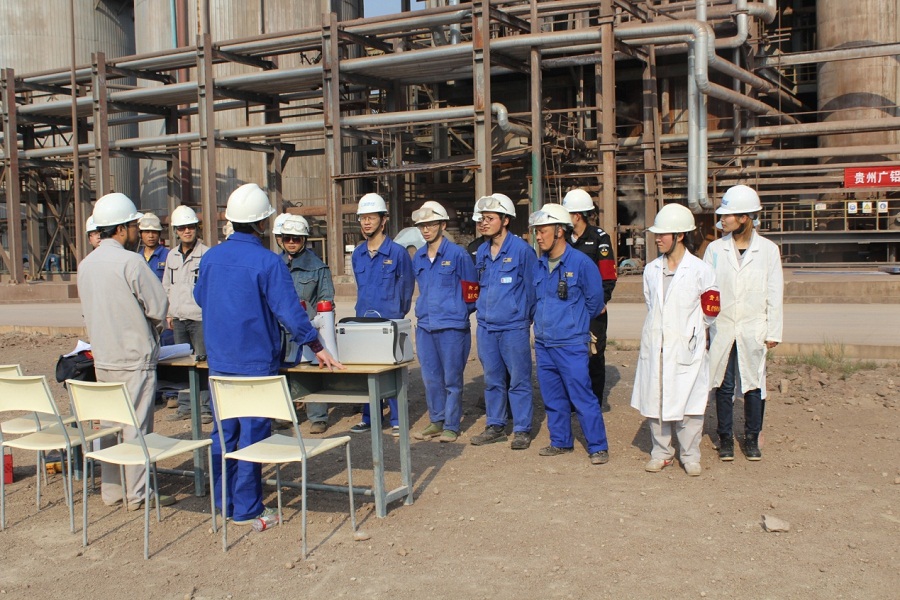 贵州永利总站溶出车间闪蒸过料管穿孔喷料应急演练