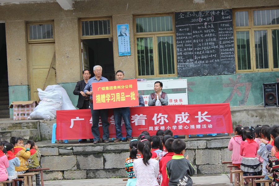 2015年5月27日,在六•一国际儿童节来临之际,为丰富孩子们的精神生活,让留守儿童度过一个多姿多彩的节日,在清镇市工会领导的带领下,贵州永利总站铝业有限公司工会组织公司人资处、财务处、安环处等相关处室人员前往犁倭镇周家桥小学开展爱心捐赠活动。