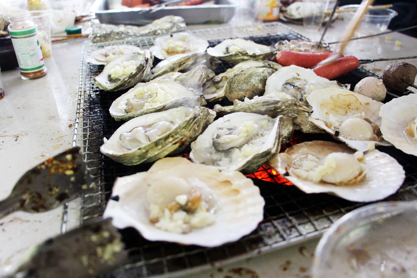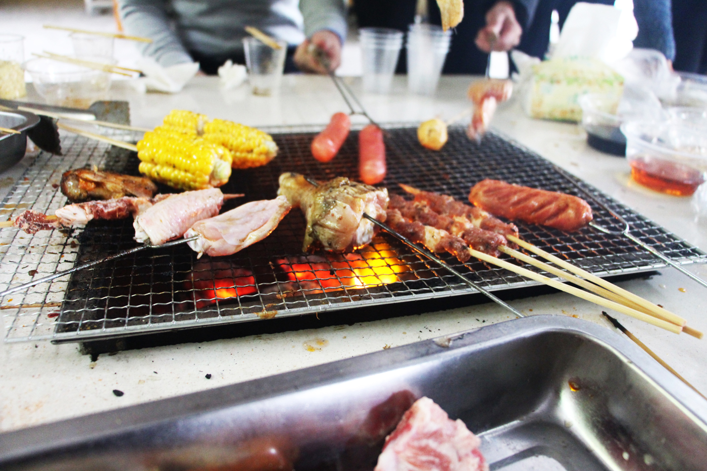 当食物摆满桌面,各位烧烤达人已经摩拳擦掌,迫不及待想要一展身手。各位吃货也被弥漫周围的烤肉香引得口水直流。一串串烤肉、一块块鸡腿,更有肥美无比的生蚝,不仅消除了大家一周工作中的疲劳,也在美味中拉近了大家的距离。