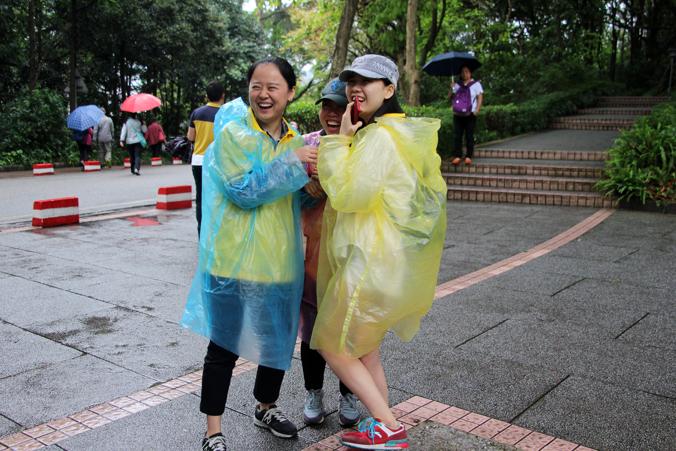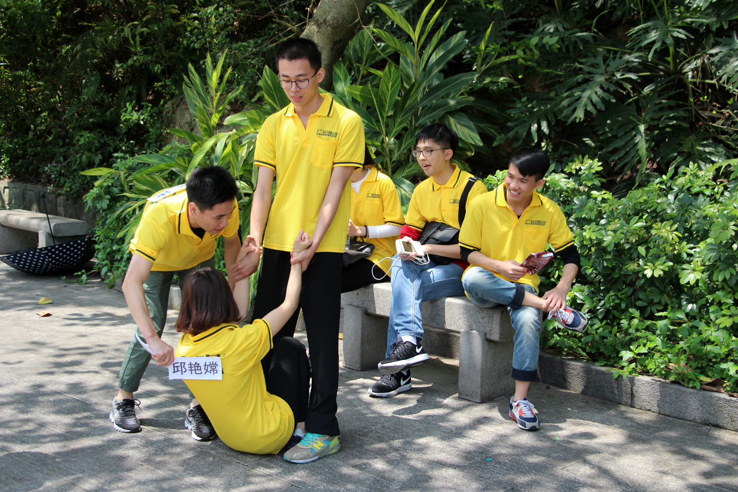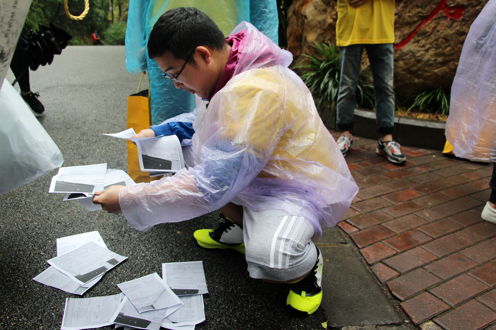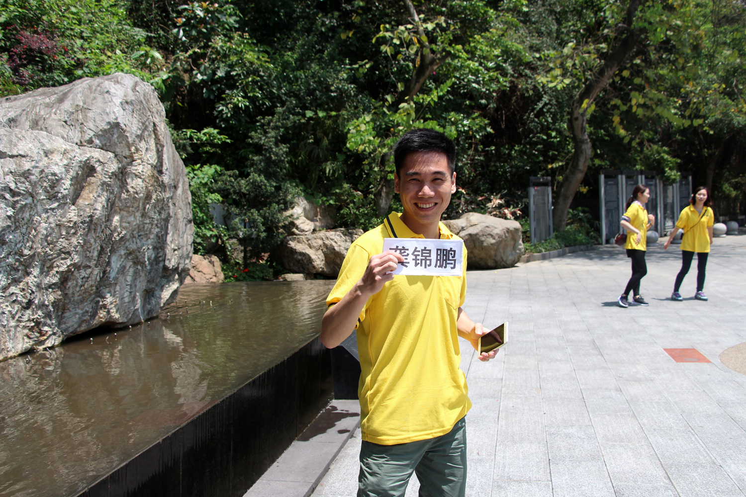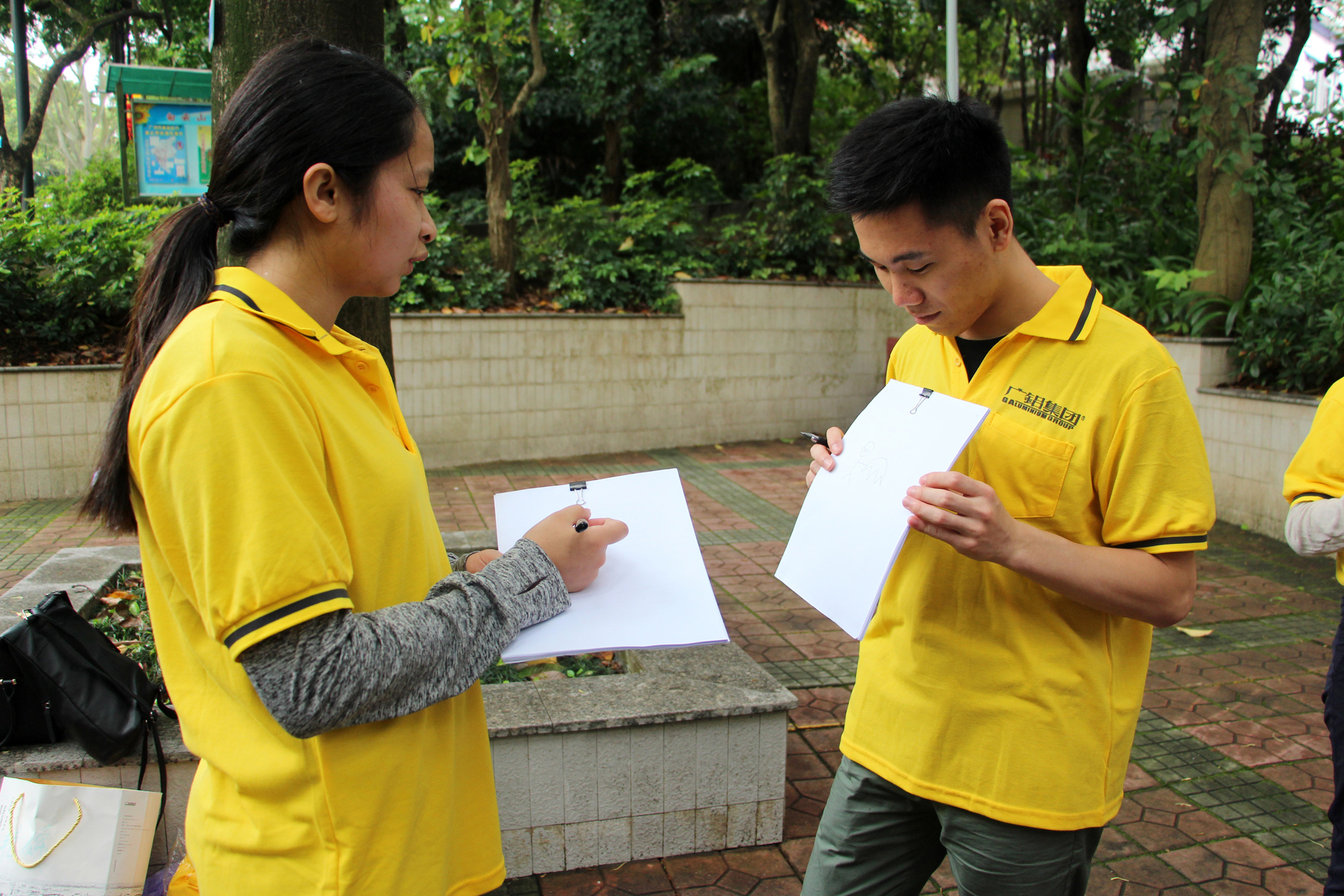 9点整,白云山脚下出现了一道亮黄色的特别风景,虽然天突降大雨,但仍浇不灭大家的热情。