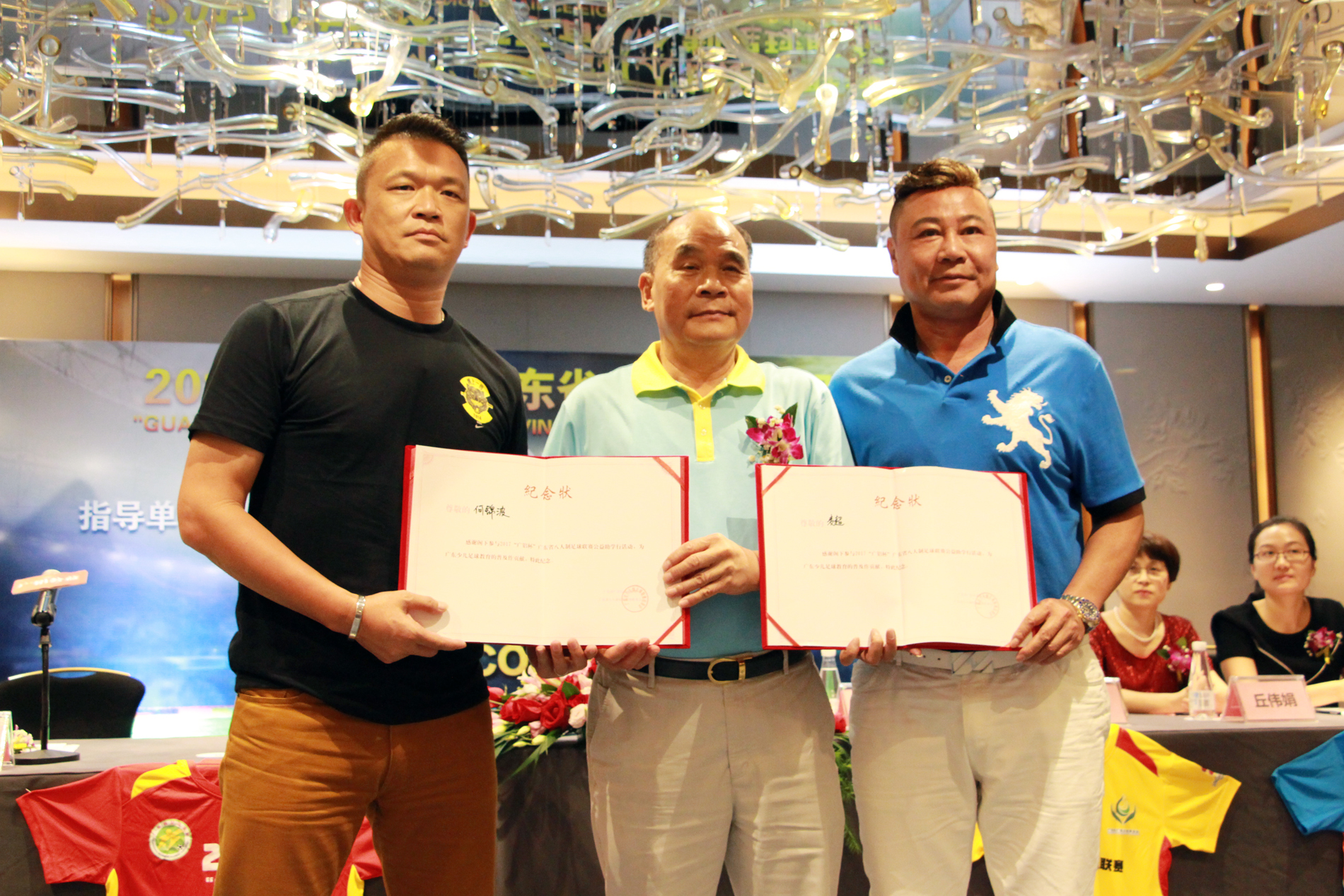 赛事期间,由主办方广东省永利总站公益基金会、承办方广州声色体育、赛事指导方广东省足球协会三方合力举办“放飞足球梦,公益助学行”公益活动。中国足球名宿麦超指导,广东足球名宿何锦波作为此次公益活动的代表,上台接受了主办方颁发的纪念状。