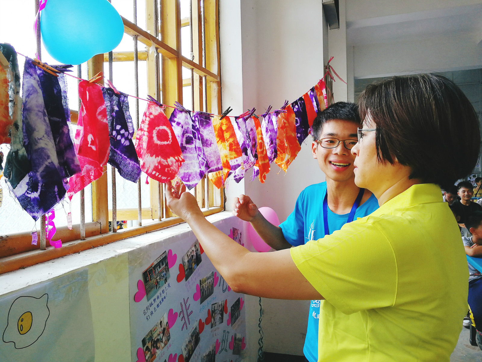 永利总站公益基金会丘伟娟理事与周楠秘书长一同来到云浮河口中学,分享志愿者、学生们的喜悦。
