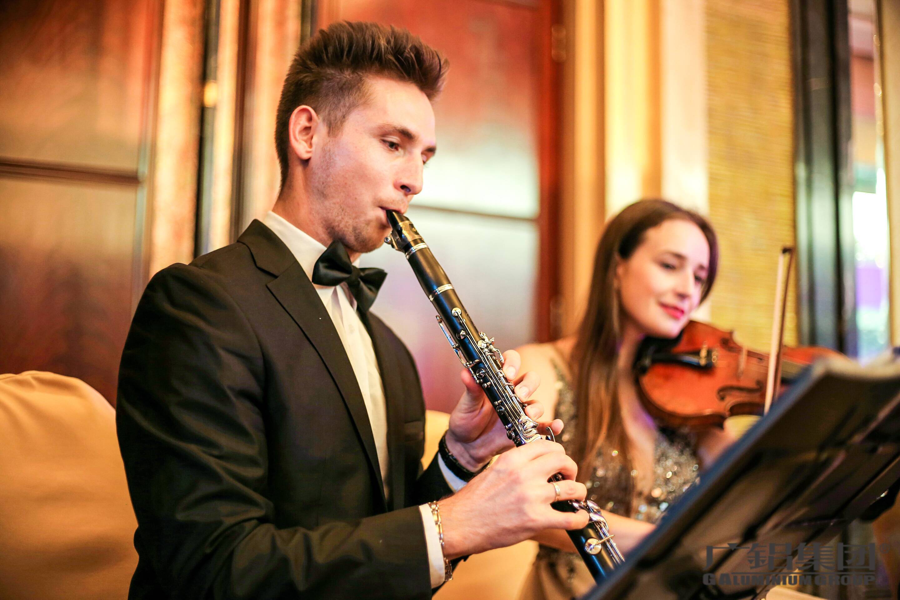 优雅动听的古典音乐演奏,搭配柔和的灯光、精致的美食、清醇的香槟,营造了轻松愉快的氛围。