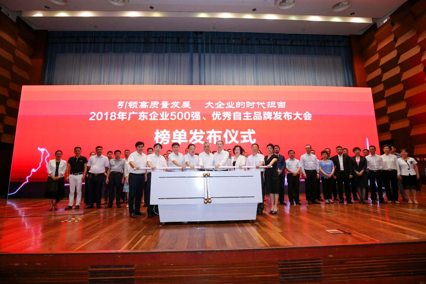 发稿时间:2018-08-138月9日,由广东省企业联合会、广东省企业家协会主办的“2018广东企业500强、优秀自主品牌发布大会”在广州市白云国际会议中心隆重举行。