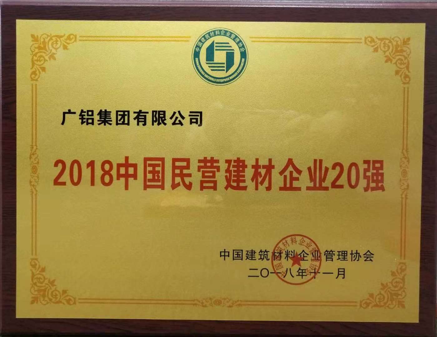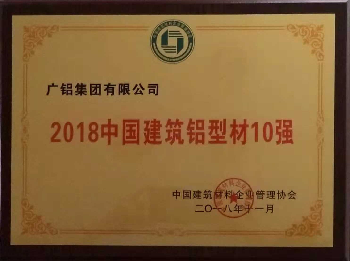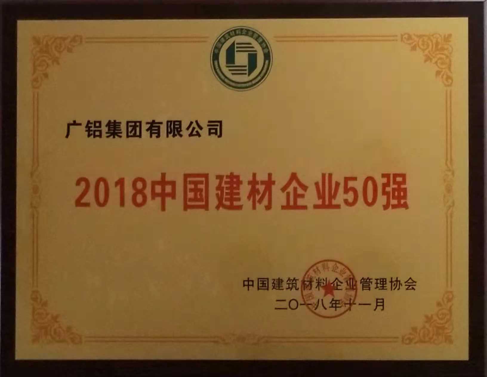 永利总站荣获“2018中国建材企业50强”、“2018中国民营建材企业20强”、“2018中国建筑铝型材10强”称号