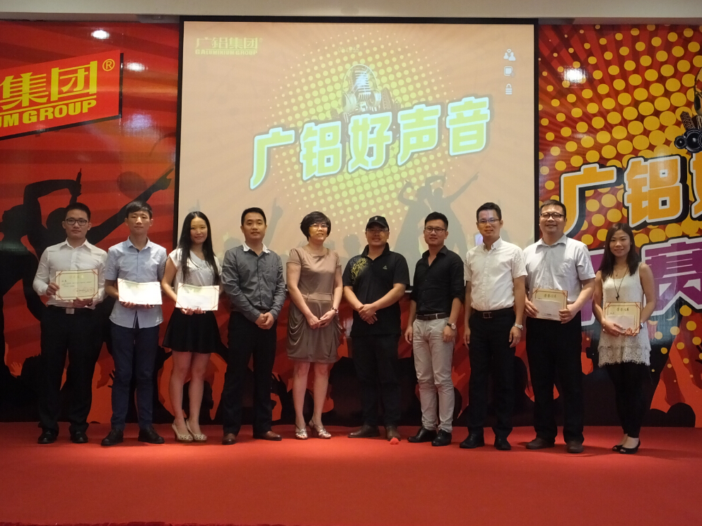 比赛的现场热闹非凡,不仅各位有空的同事过来当拉拉队为选手助威呐喊,公司高层也参与到员工生活之中与众同乐。而现场参赛的13名选手及1名远在贵州公司以视频参加比赛的选手更是卯足了劲地展示自我风采。淘汰赛环节中,铝材事业部的歌王、台风极佳的企管部选手、情深意切的盈基公司选手、歌舞均佳的结算部选手……纷纷登台亮相,现场竞争极其激烈,多位选手评分相差不过分毫。在争霸赛环节中,比赛进入到了白热化阶段,顺利晋级的7名选手更是唱出平时自己最拿手的歌,向着更高、更好、更美的目标发起挑战。最终,经过激烈的角逐,企管部的邓雯雯以极佳的台风和美妙的歌声荣获第一届集团歌手大赛“永利总站好声音”第一名,铝材事业部的汤海洲以其“苦情王子”的歌声获得第二名,贵州公司的陈鑫以使人奋发的歌曲获得第三名,铝材事业部的陆智超、及盈基公司的聂正斐分别获得四、五名。最后在主持人的指引下,五位评委老师分别为大赛前五名颁发奖状及奖金,祝贺他们取得的优秀成绩,也期待下一届的歌手大赛越办越好。