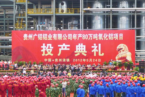 2012年5月24日,贵州永利总站铝业有限公司年产80万吨氧化铝项目投产典礼在贵州省清镇市隆重举行。贵州省人民政府副省长慕德贵,广东省人民政府副省长刘志庚,全国人大财经委委员、空军原副政委、中将芮清凯,全国政协特邀委员、武警部队原副政委、中将刘世民,贵州省人大原常务副主任肖永安,广州市人大主任张桂芳,广州市政协原主席林元和,贵阳市委副书记、市长李再勇,广州市人大副主任赵小穗,贵阳市人大主任李忠,广州市副市长曹鉴燎,广州市政协副主席平欣光,贵阳市政协副主席张承新,贵阳市人大常委会副主任、清镇市委书记杨明晋等粤黔两地政府部门众多领导悉数出席,同时百余家关联企业前往考察。此次投产典礼现场出席人员近2000人,场面空前盛大。